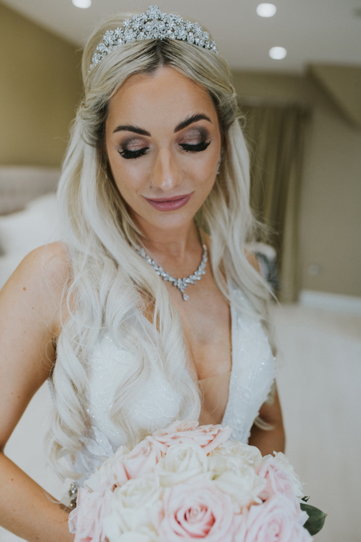 It was a drizzly October morning. The marquee was ready and beautifully decorated when I arrived. Last finishing touches to the wedding décor, last checks run by Andrew and we were ready to go! I went to meet the girls. Melanie was supported by her best friends and sister. There was a lot of excitement in that bridal room! The dress was proudly and patiently waiting to be put on. The shoes were at their sparkliest and the girls were at their happiest. It was a murky day, but quite rightly, not for a moment were they worried about the weather!