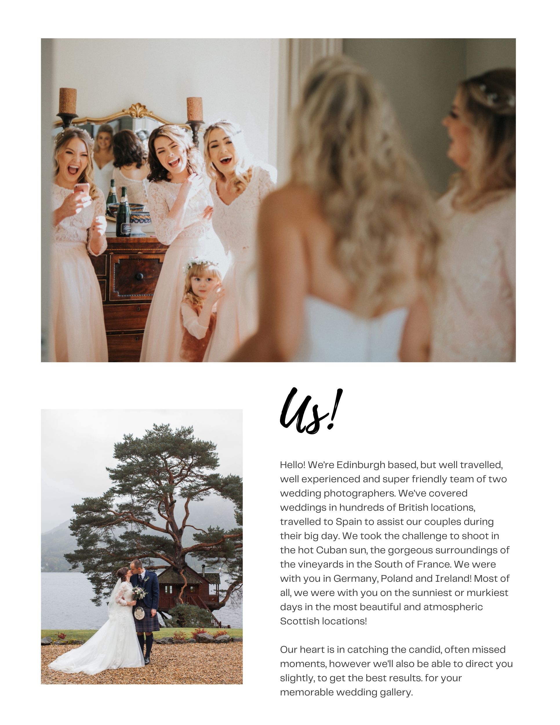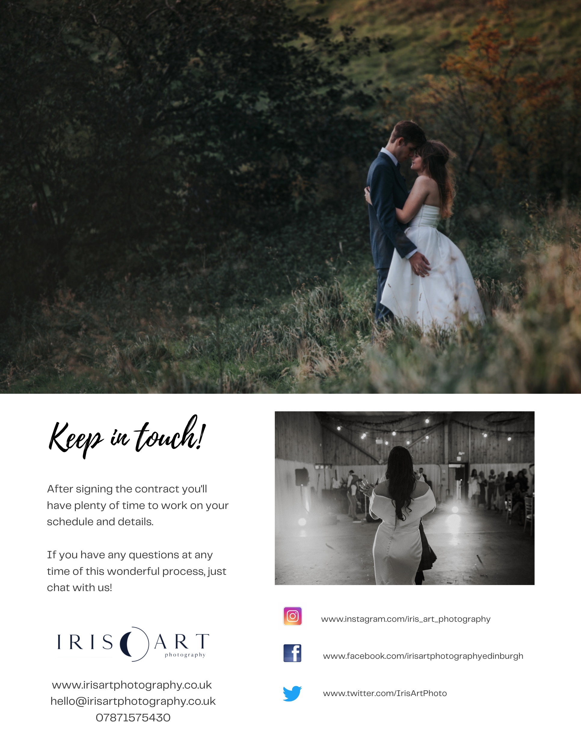 Take a look at our Wedding Photography Guide to learn more about our approach! It was created by experienced Edinburgh wedding photographers- our small team at Iris Art Photography – to give you an idea of what to expect. Of course, we’ll adapt everything to fit your unique day, venue, the weather, and any special requests you may have!